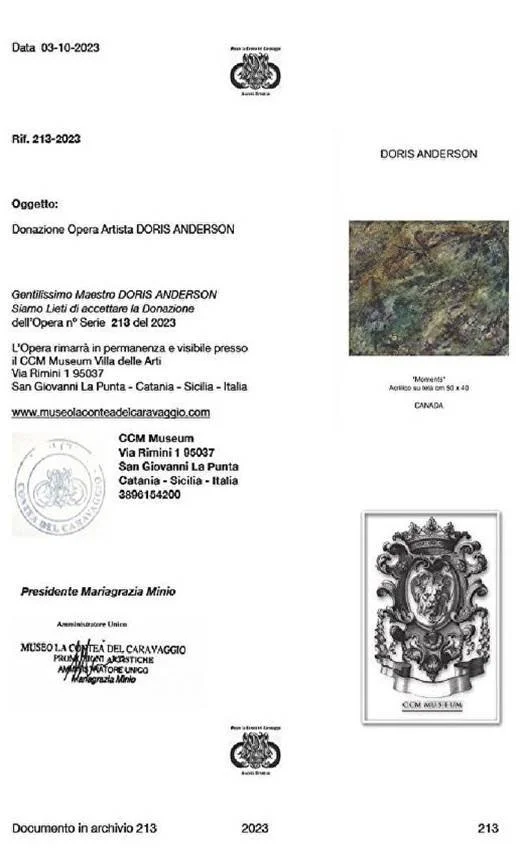CARAVAGGIO COUNTY MUSEUM Acquired Painting: MOMENTS, 20 X 16 inches (50×40 cm) Acrylic on Canvas, Villa delle Arti, Via Rimini 1 – San Giovanni, La Punta CT 9537, Sicily, Italy on September 30, 2023